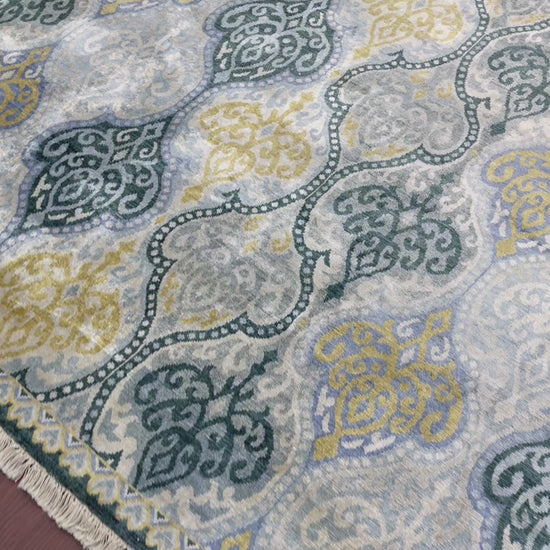 Blue and Grey Pure Silk Transitional Area Handknotted Rug 7.11x10.3ft 240x313Cms