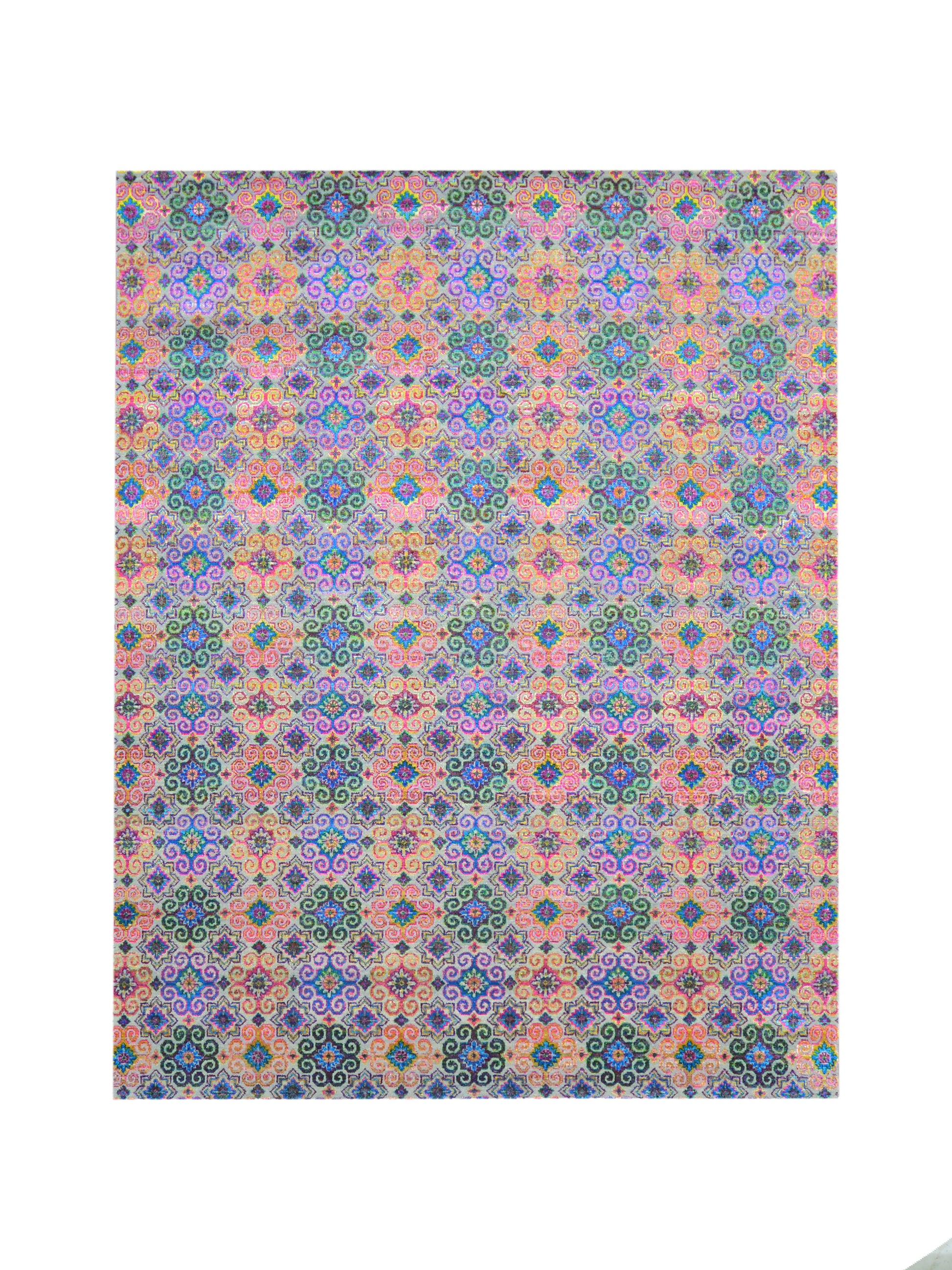 Grey and Multy Sari Silk and Wool Transitional Handknotted Area Rug 7.10x10.4ft 238x316Cms