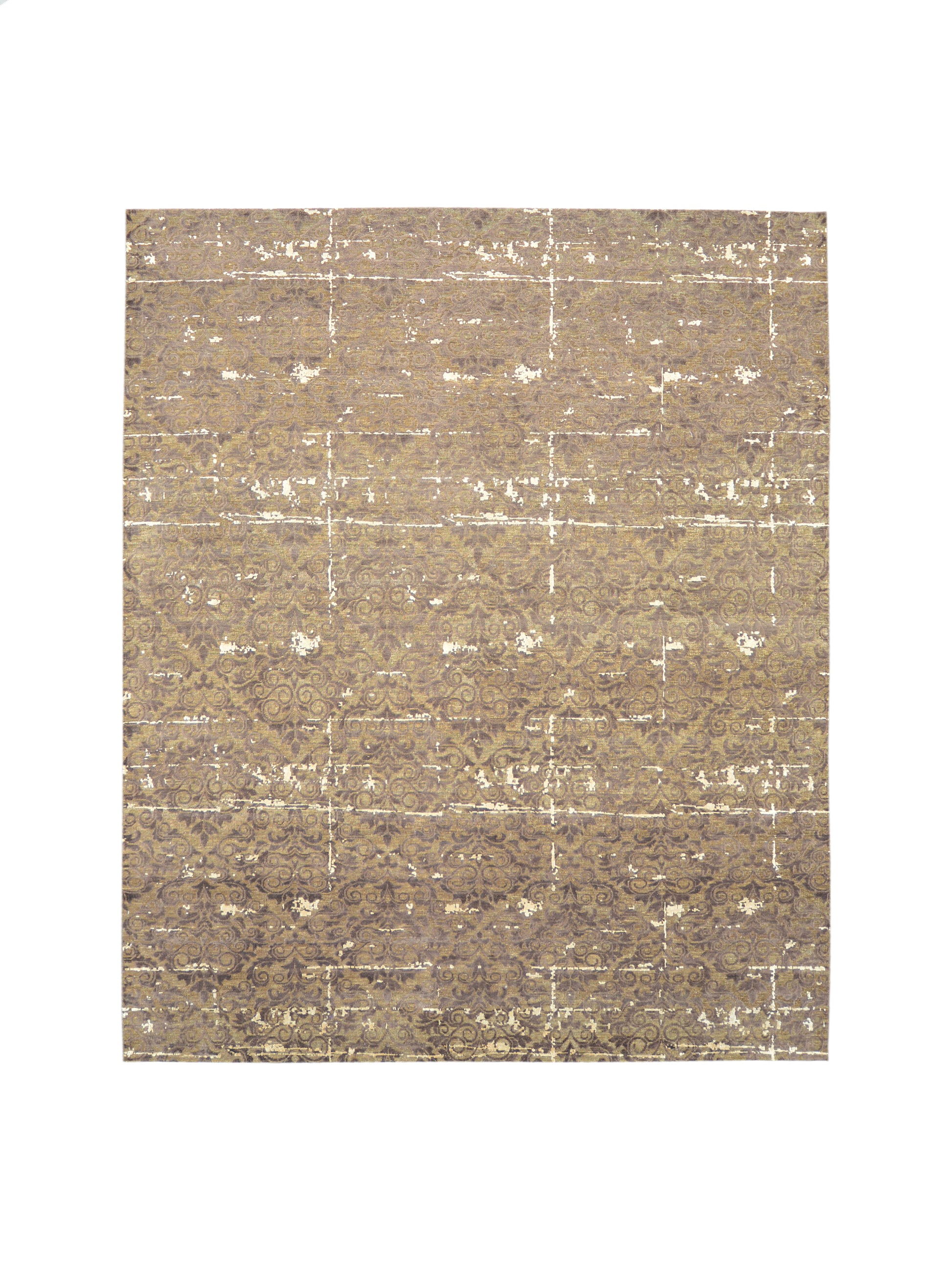 Brown and Ivory Viscose and Wool Transitional Damask Handknotted 7.11x9.6Ft 243x288Cms Area Rug