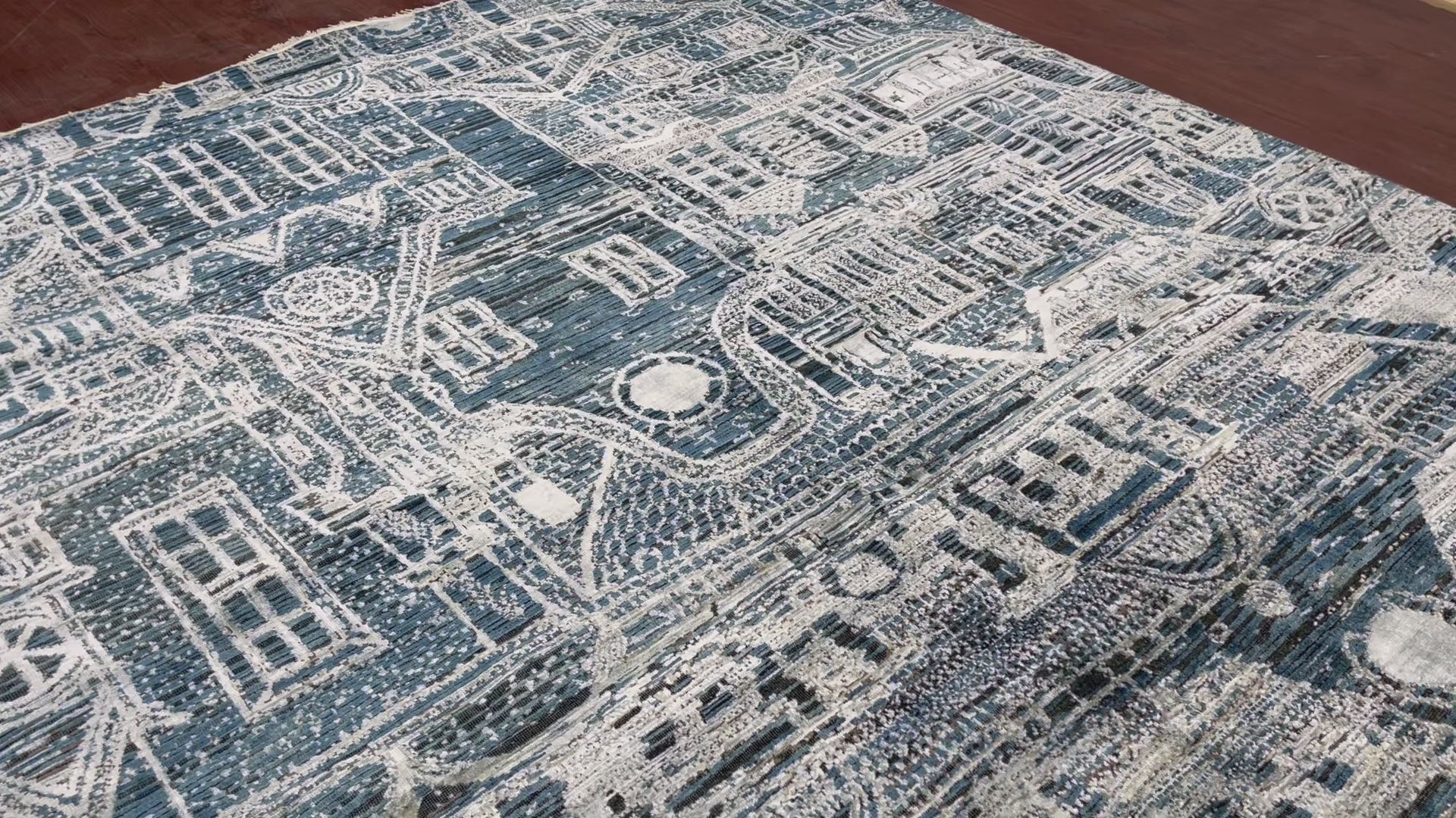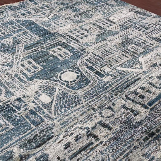 Blue, Silver Viscose and Wool Oxidized Modern Handknotted Area Rug 7.9x9.10ft 236x297Cms