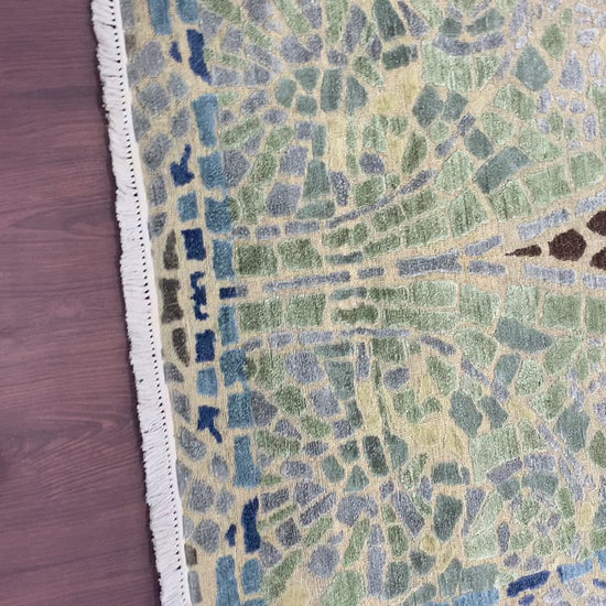 Grey Multi Silk Wool Modern Handknotted Area Rug 3.11x6.3ft 119x190Cms