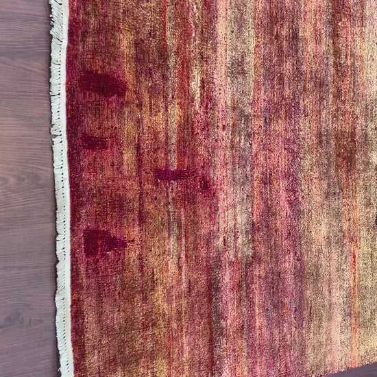 Red Gold Pure Sari Silk Modern Handknotted Area Rug 4.0x5.9ft 122x175Cms