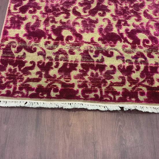 Pink Red Sari Silk Wool Modern Handknotted Area Rug 3.11x5.7Ft 120x168Cms