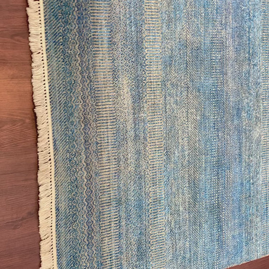 Silver Blue Silk Wool Modern Handknotted Area Rug 4.5x5.11Ft 134x180Cms