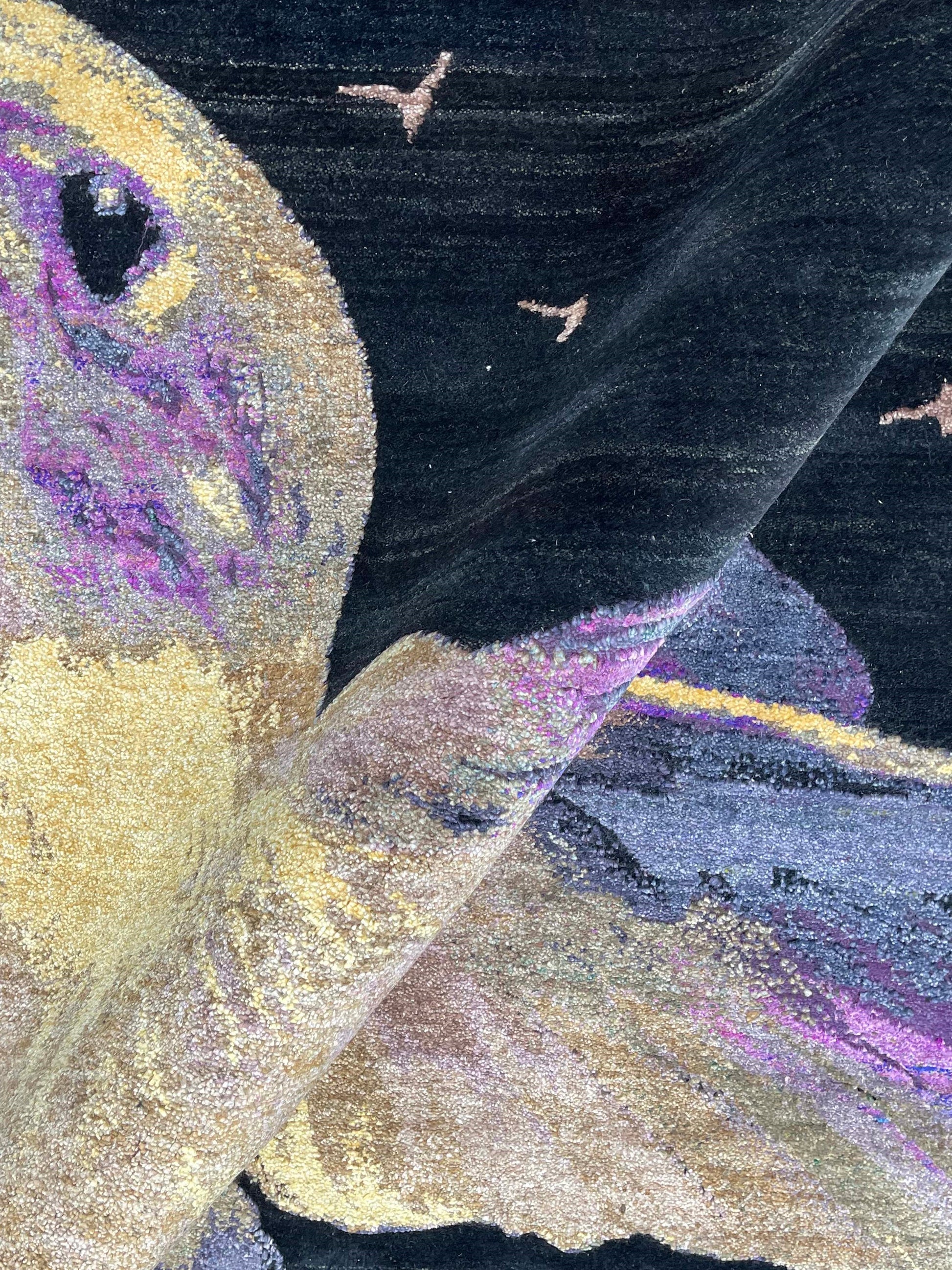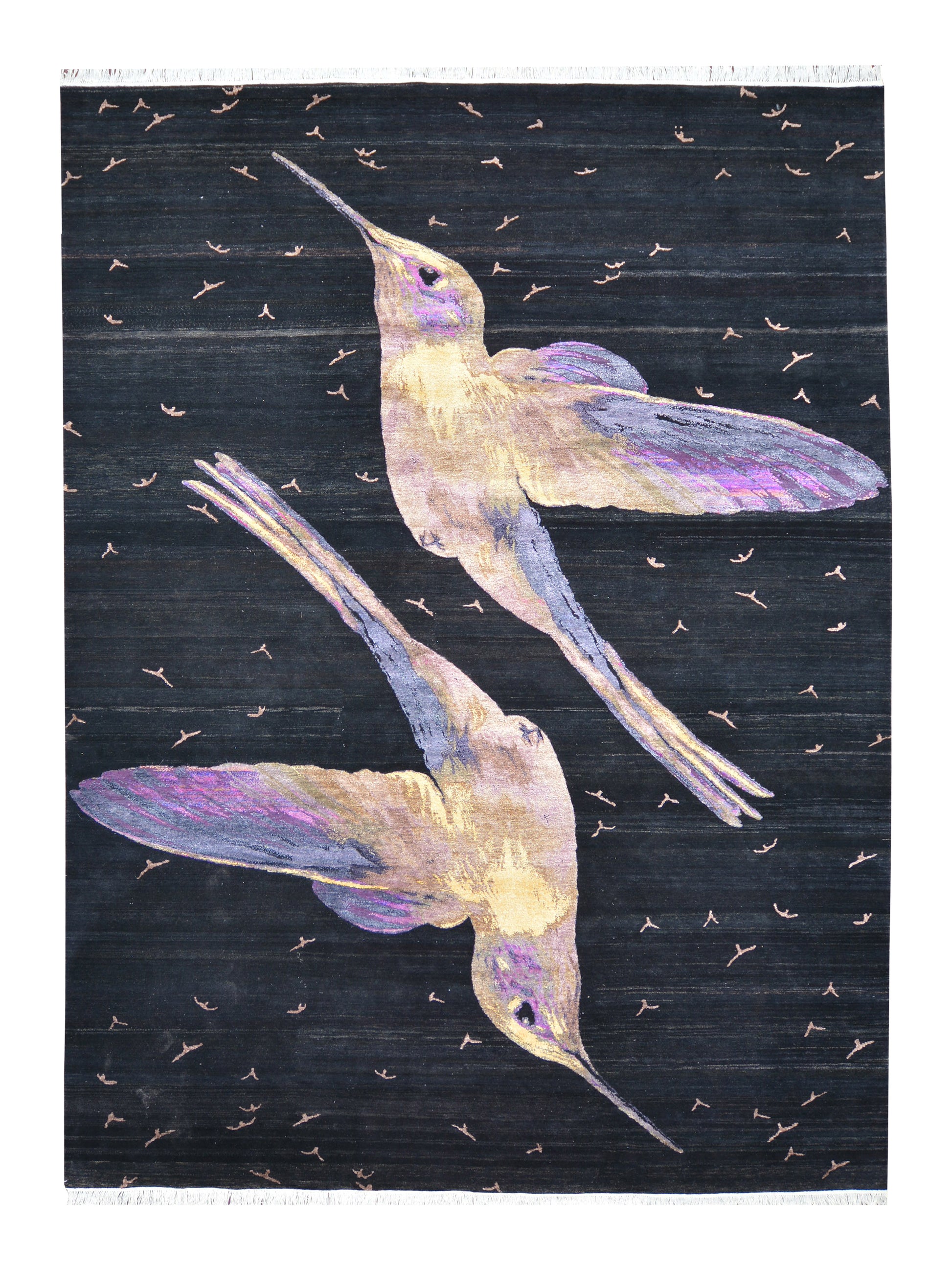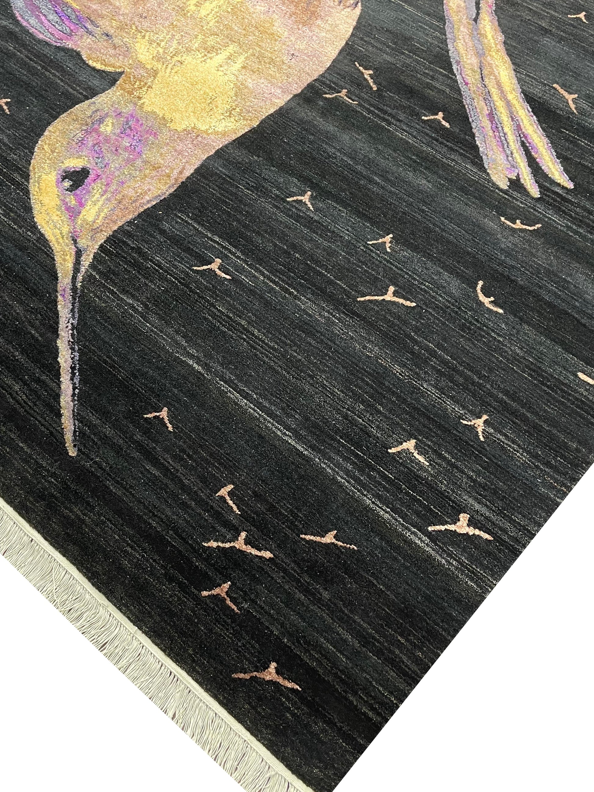 Black, Multy Sari Silk Modern Handknotted Area Rug 8.9x12.2ft 266x370Cms
