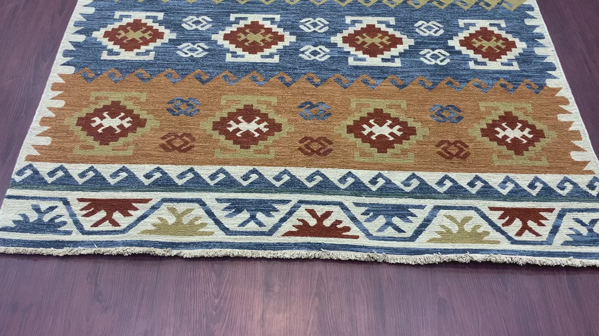 Ivory Pure Wool Traditional Soumak Area Rug 6.0x8.11ft 184x270Cms