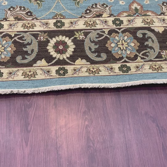 L.Blue Pure Wool Traditional Soumak Area Rug 8.2x9.11ft 247x300Cms