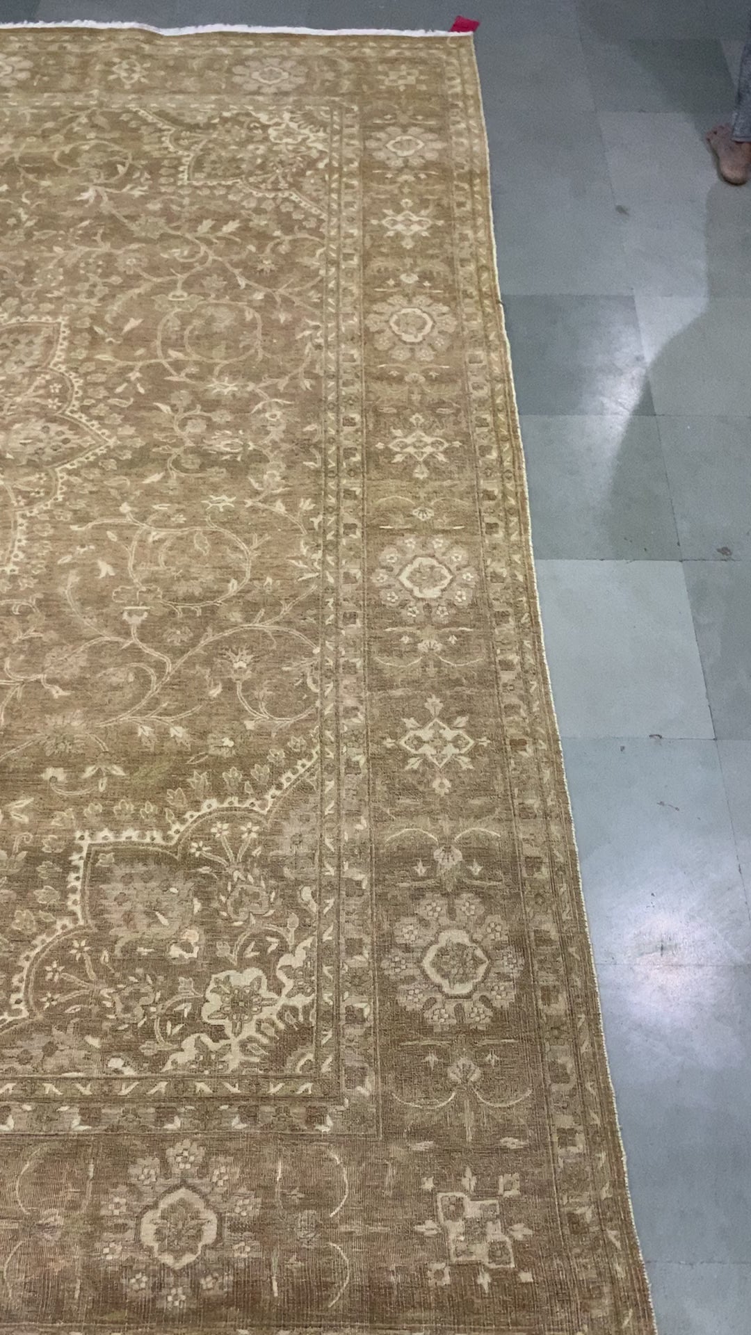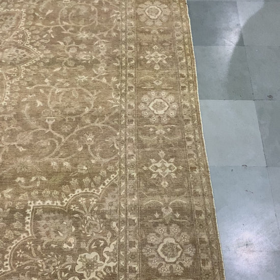 Floral Brown Ivory and Camel Traditional Tebriz Pure Wool Luxury Handknotted 7.9x9.10Ft 236x298Cms Area Rug