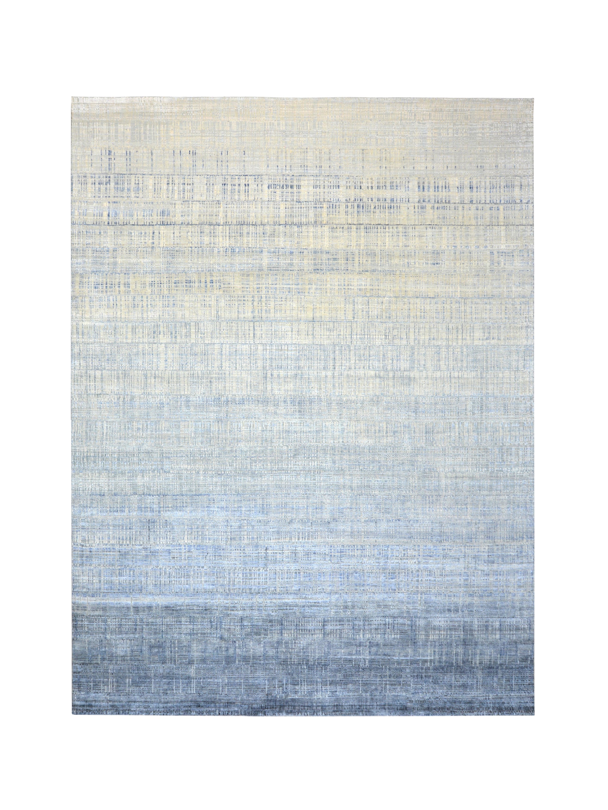 Blue, Grey and Ivory Silk and Wool Modern Textured Handknotted 9.0x12.3Ft 275x372Cms Area Rug
