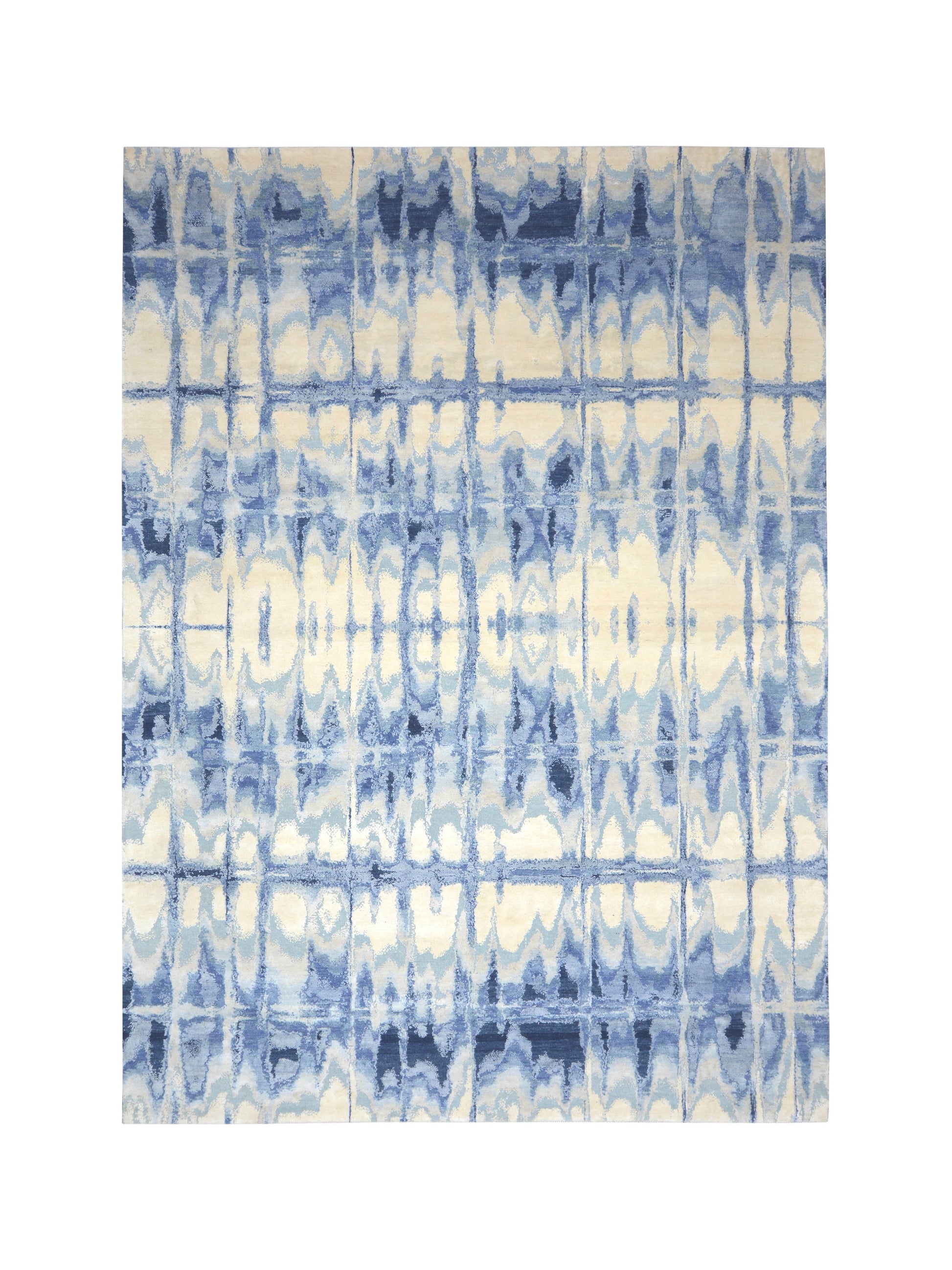 Modern Abstract Handknotted Silk and Wool Area Rug