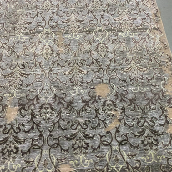 Transitional Erased Handknotted Silk and Wool Area Rug
