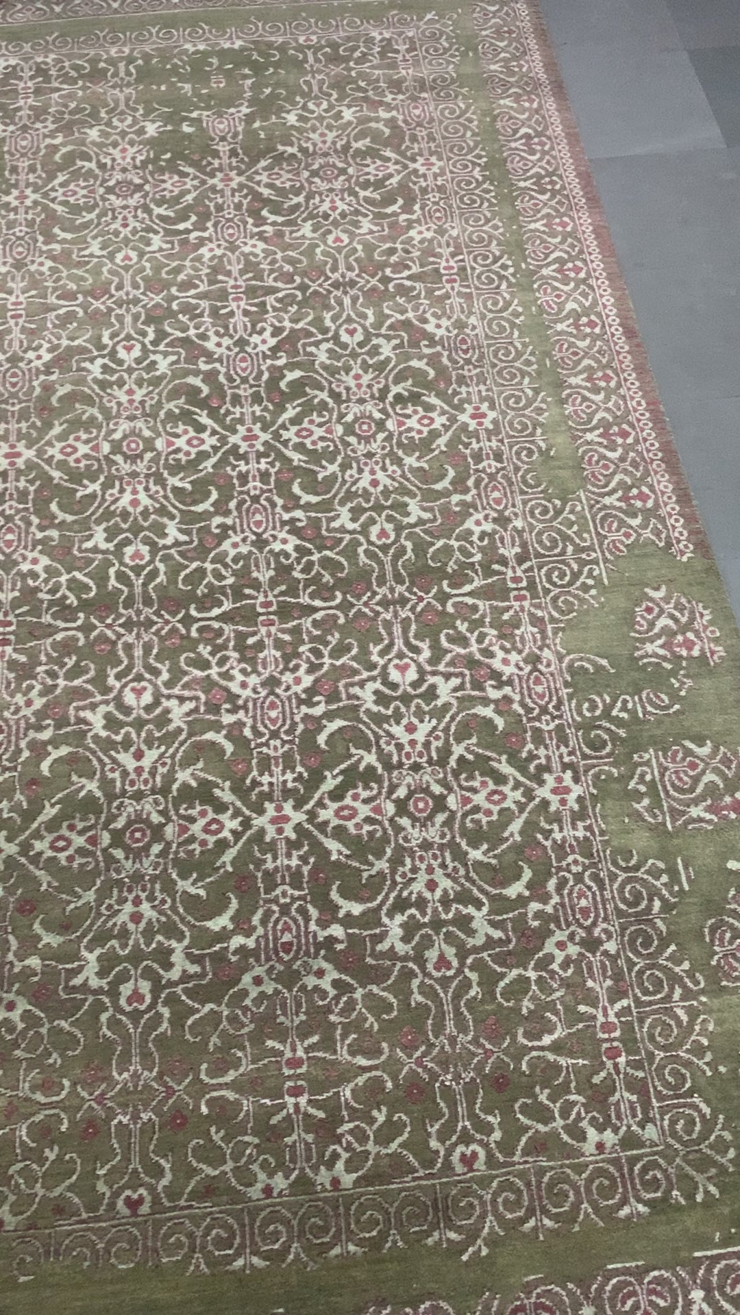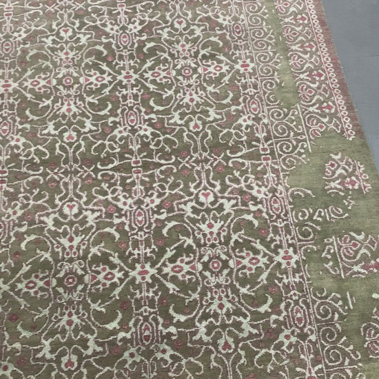 Garden Olive Green, Ivory and Red Transitional Erased Handknotted 7.11x10.3Ft 242x311Cms Area Rug