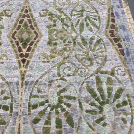 Malibu Ivory, Green and Light Blue Transitional Muzak Handknotted 7.11x10.7Ft 241x322Cms Area Rug