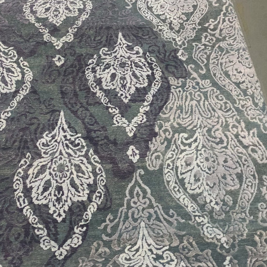 Lantern Damask Grey, Silver and Lavender Transitional Handknotted 7.10x9.11Ft 237x301Cms Area Rug