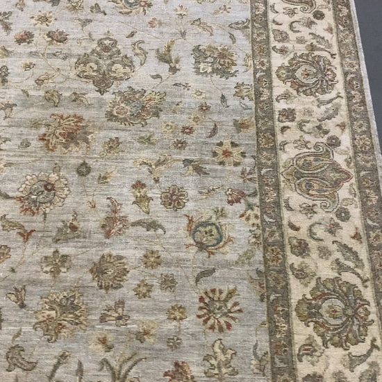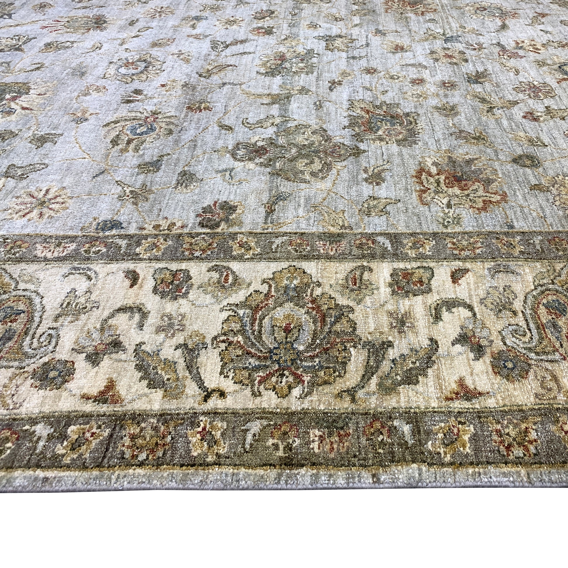Elegacy Silver and Ivory Traditional Agra Floral Pure Silk Handknotted 7.11x10.1Ft 240x307Cms Area Rug