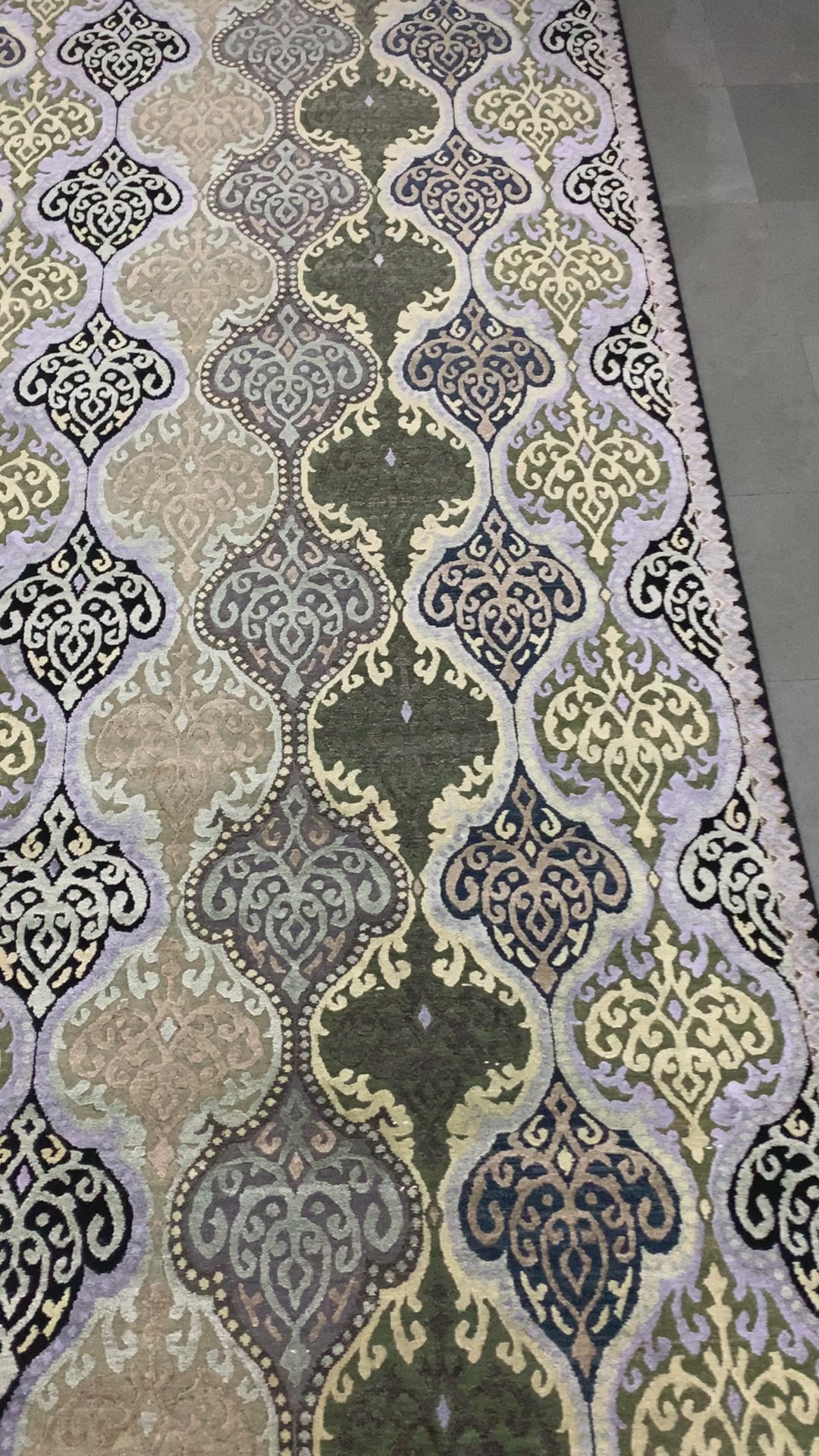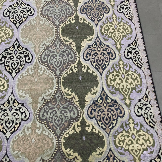 Wazir Ivory, Black, Green and Blue Transitional Damask Handknotted 8.0x10.0Ft 245x305Cms Area Rug