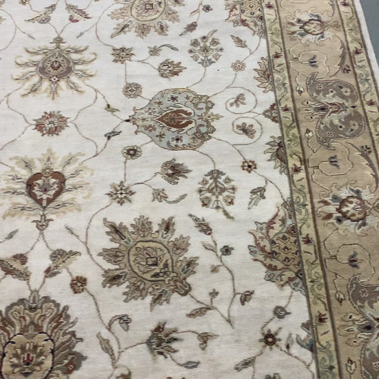 Mughal Darbar Ivory Beige and Camel Traditional Pure Wool Handknotted 8.0x9.11Ft 243x301Cms Area Rug
