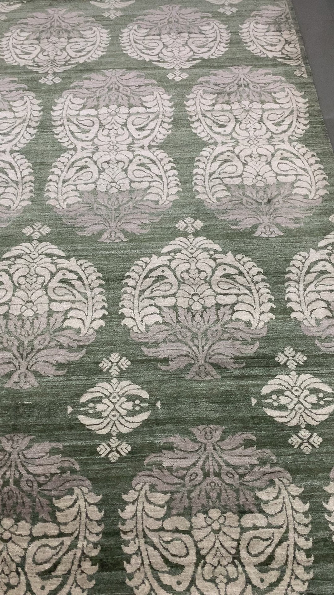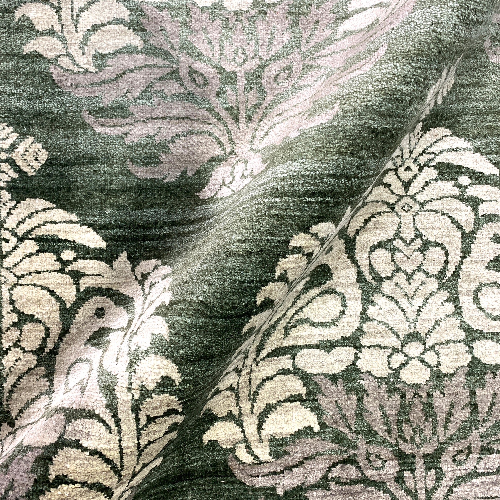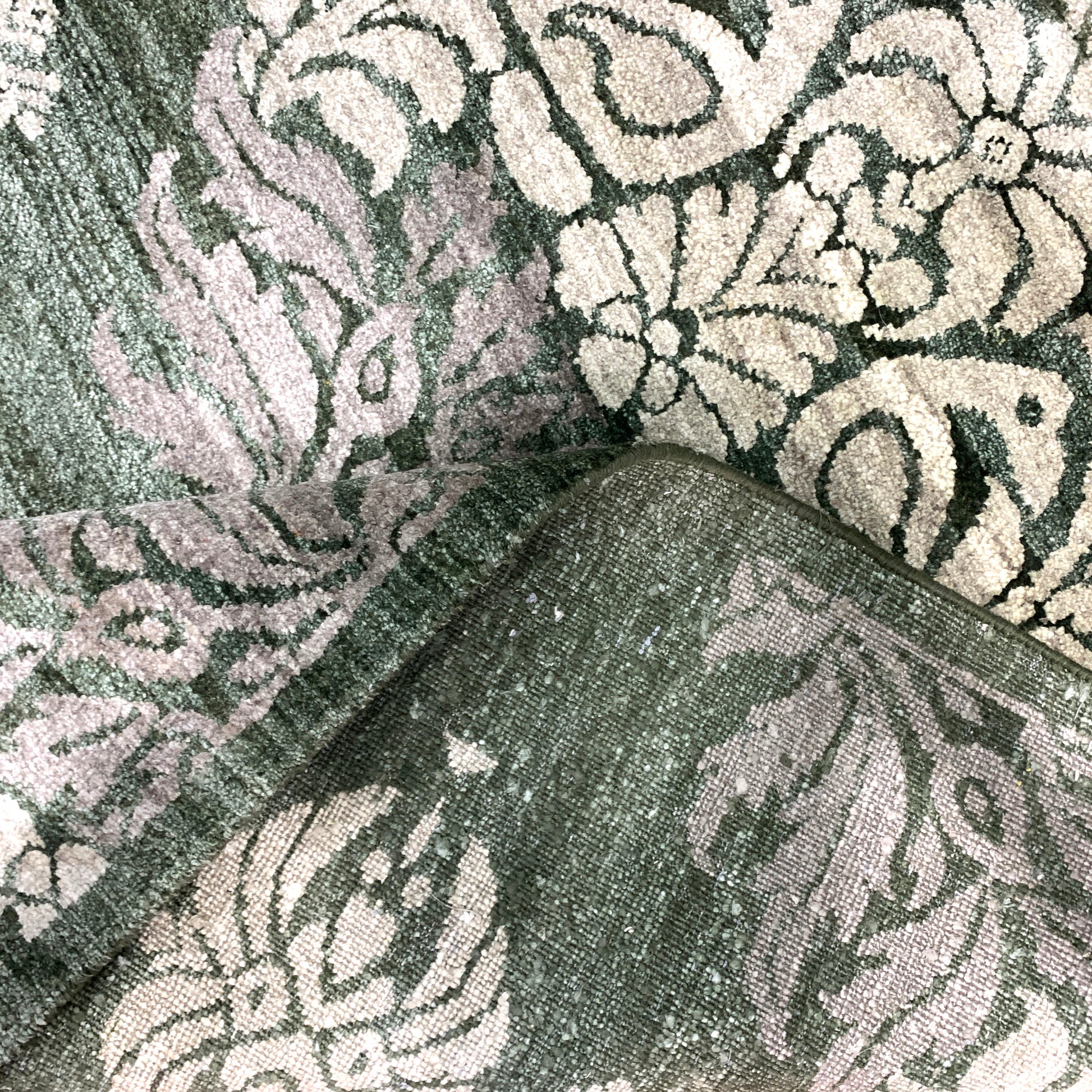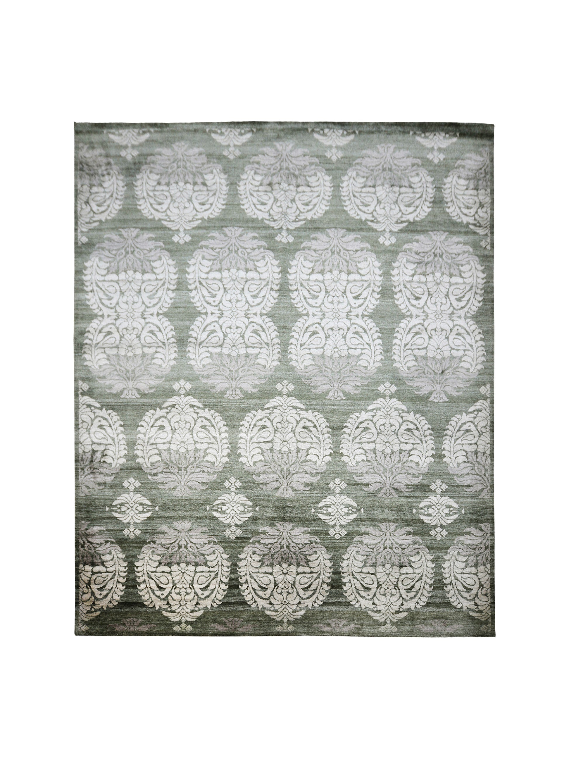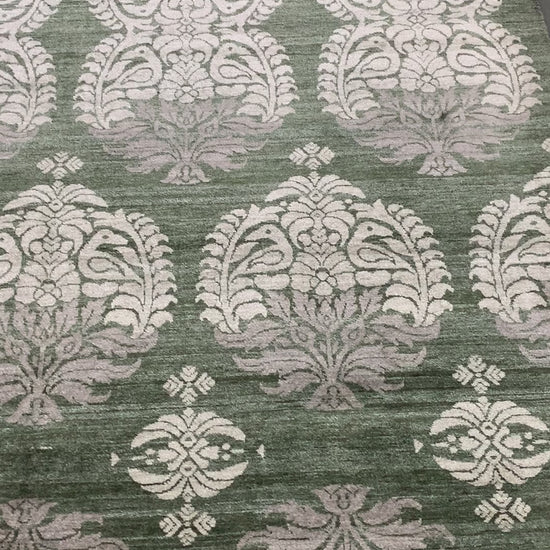Flower Green and Ivory Transitional Floral Pure Silk Handknotted 8.2x9.11Ft 249x303Cms Area Rug