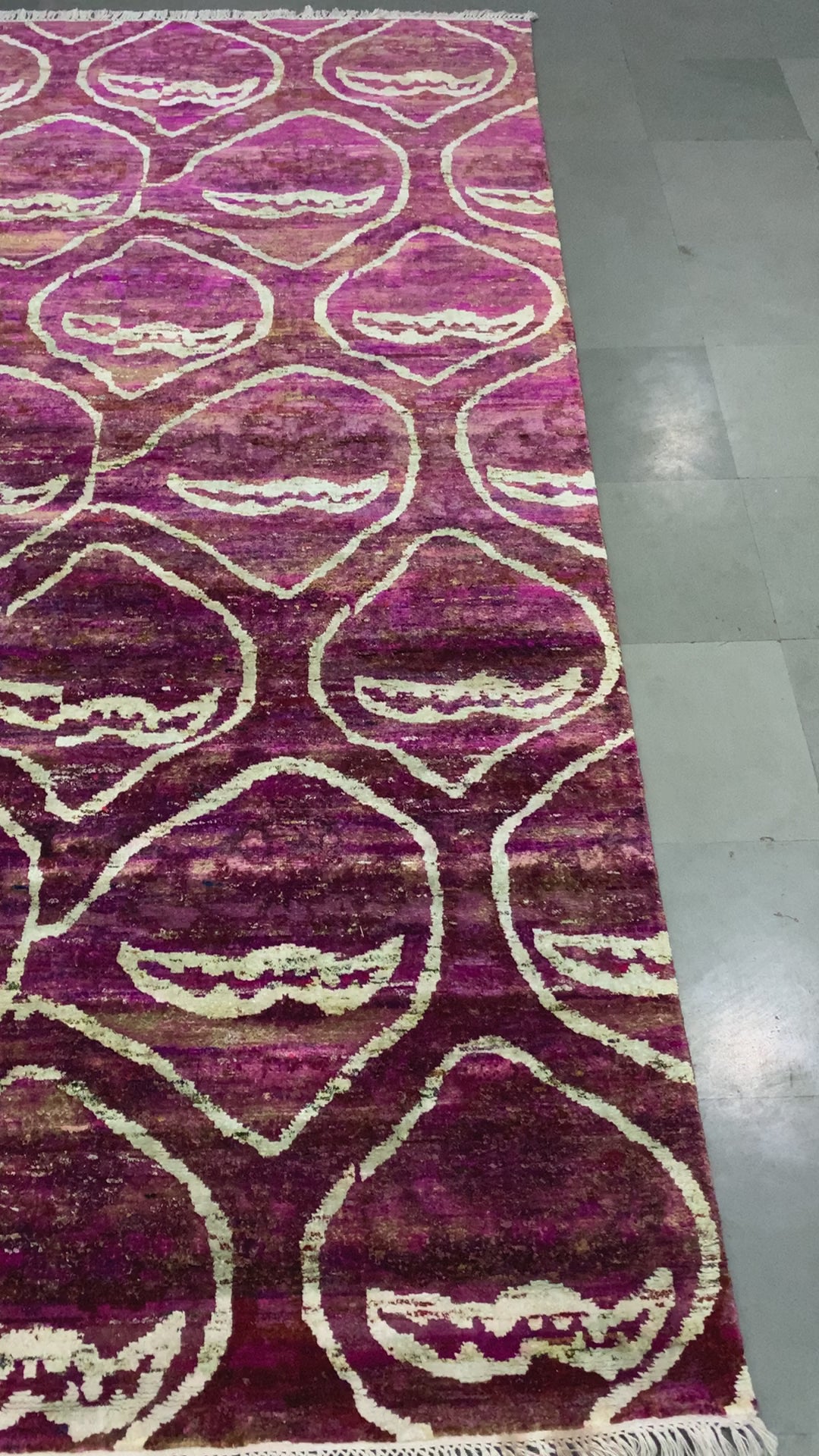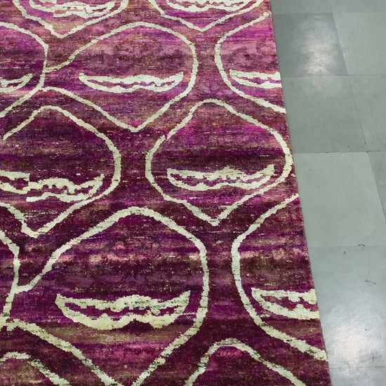 Rose Pink and Ivory Pure Sari Silk Contemporary Damask Handknotted 7.6x10.0Ft 228x304Cms Area Rug