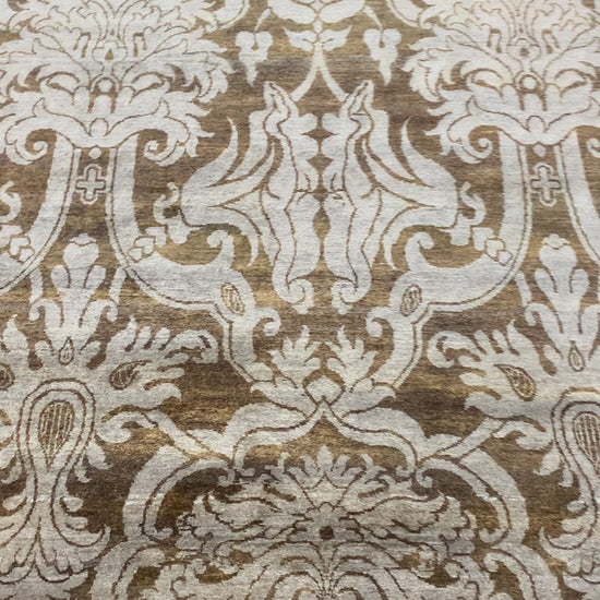 Elegacy Camel, Brown and Ivory Transitional Damask Pure Silk Handknotted 7.11x10.7Ft 240x322Cms Area Rug