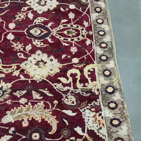 Mughal Darbar Red and Ivory Traditional Silk and Wool Handknotted 7.11x9.6Ft 242x288Cms Area Rug