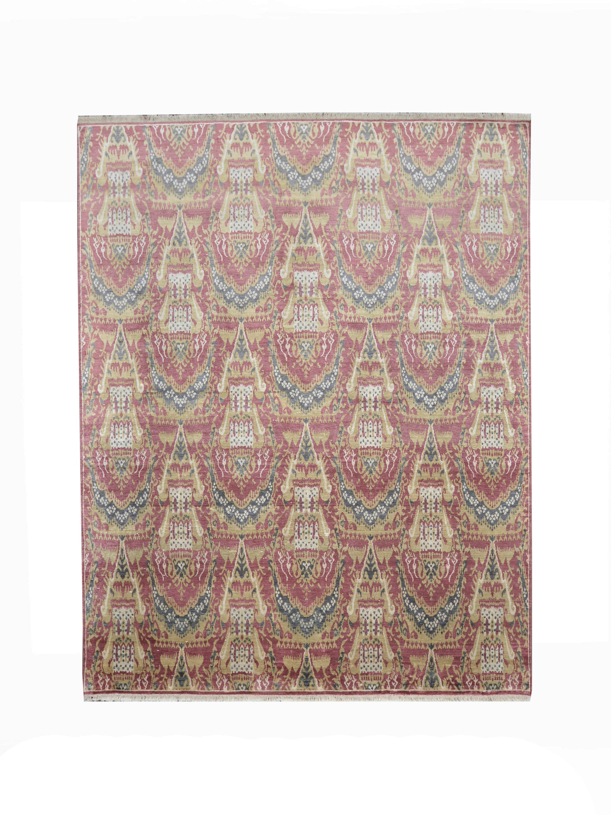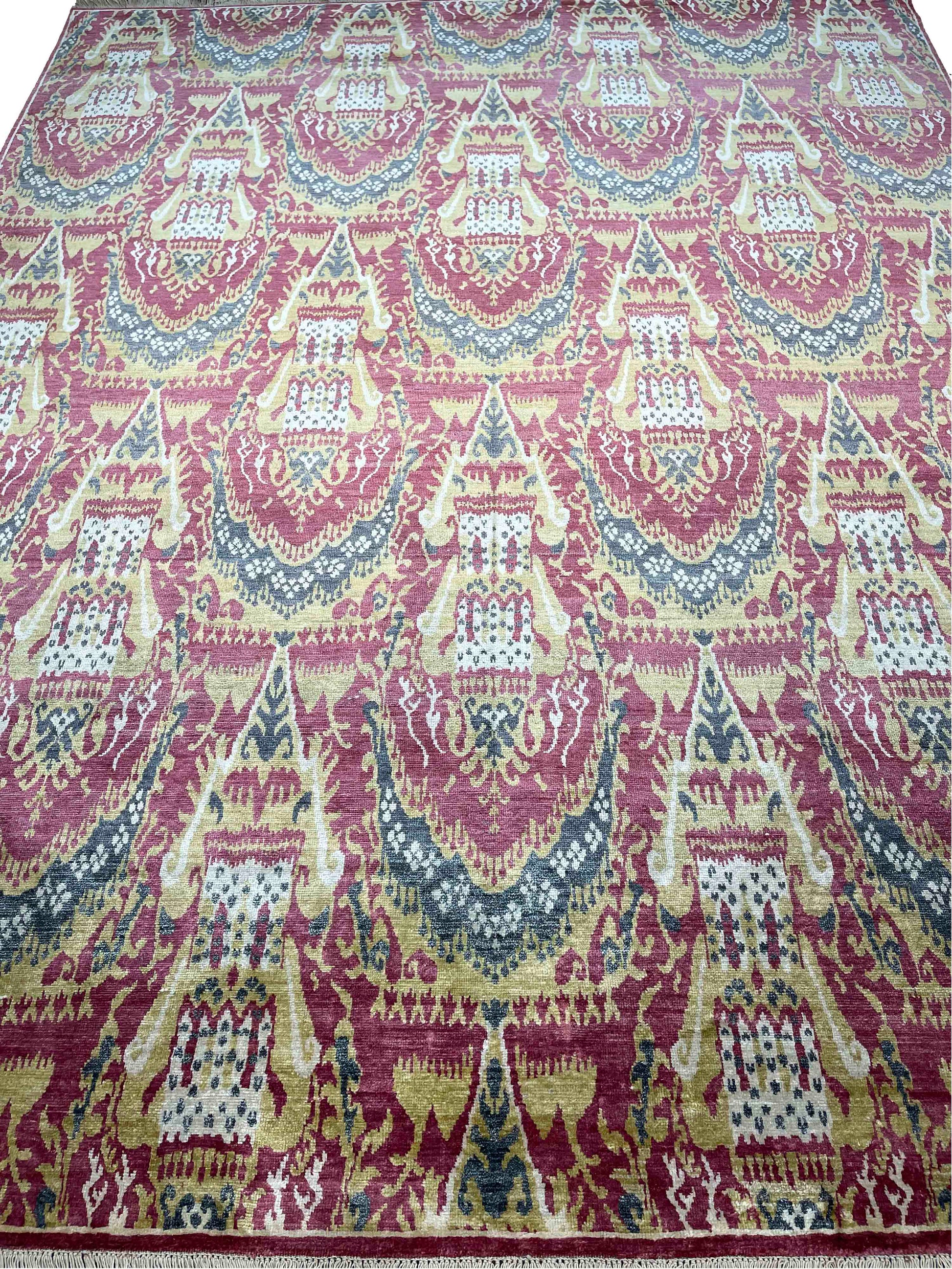 Traditional Ikat Handknotted Pure Silk Area Rug