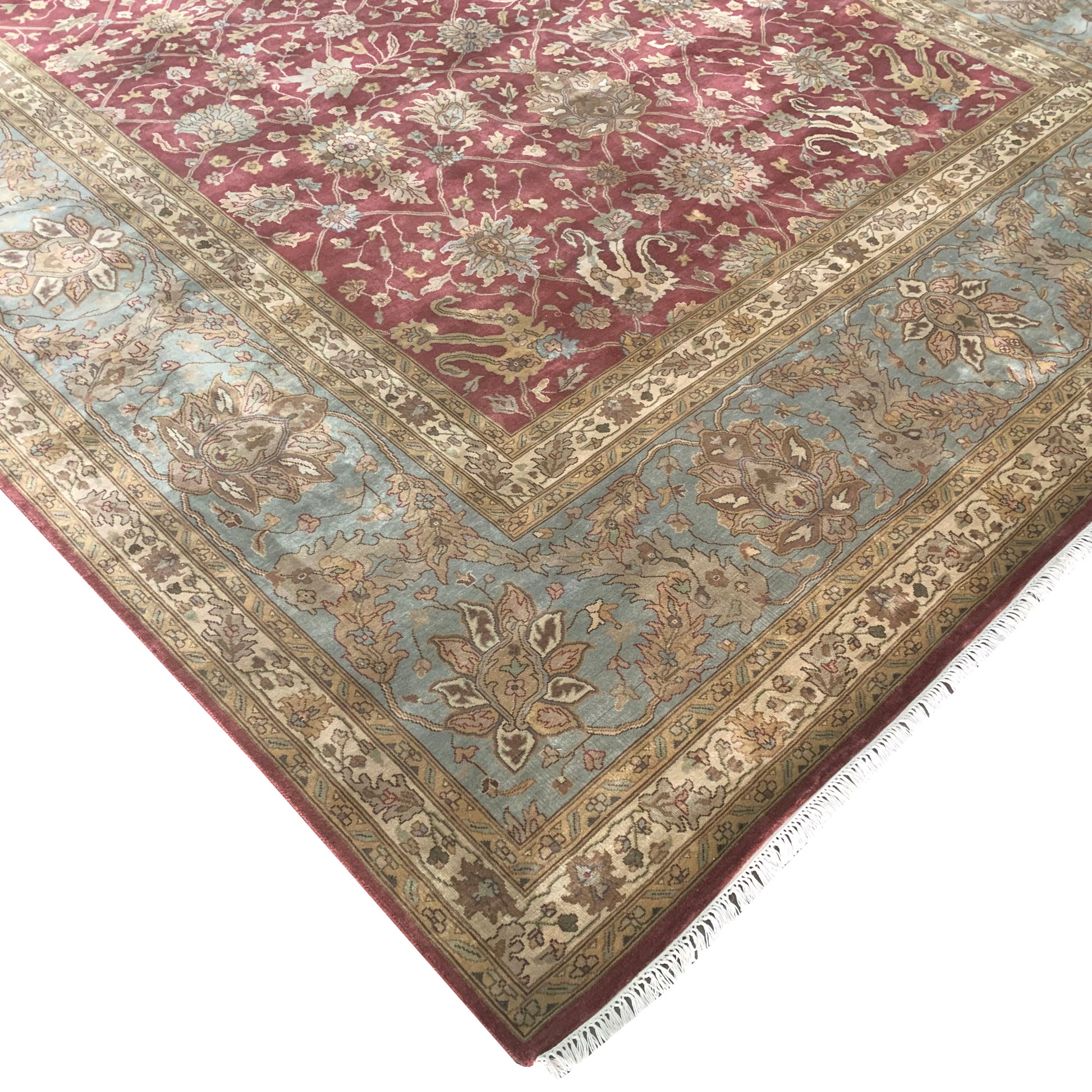 Red and L. Blue, Pure Silk Traditional Agra Handknotted 10.0x15.6Ft 305x479Cms Area Rug