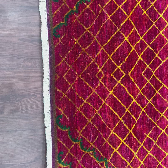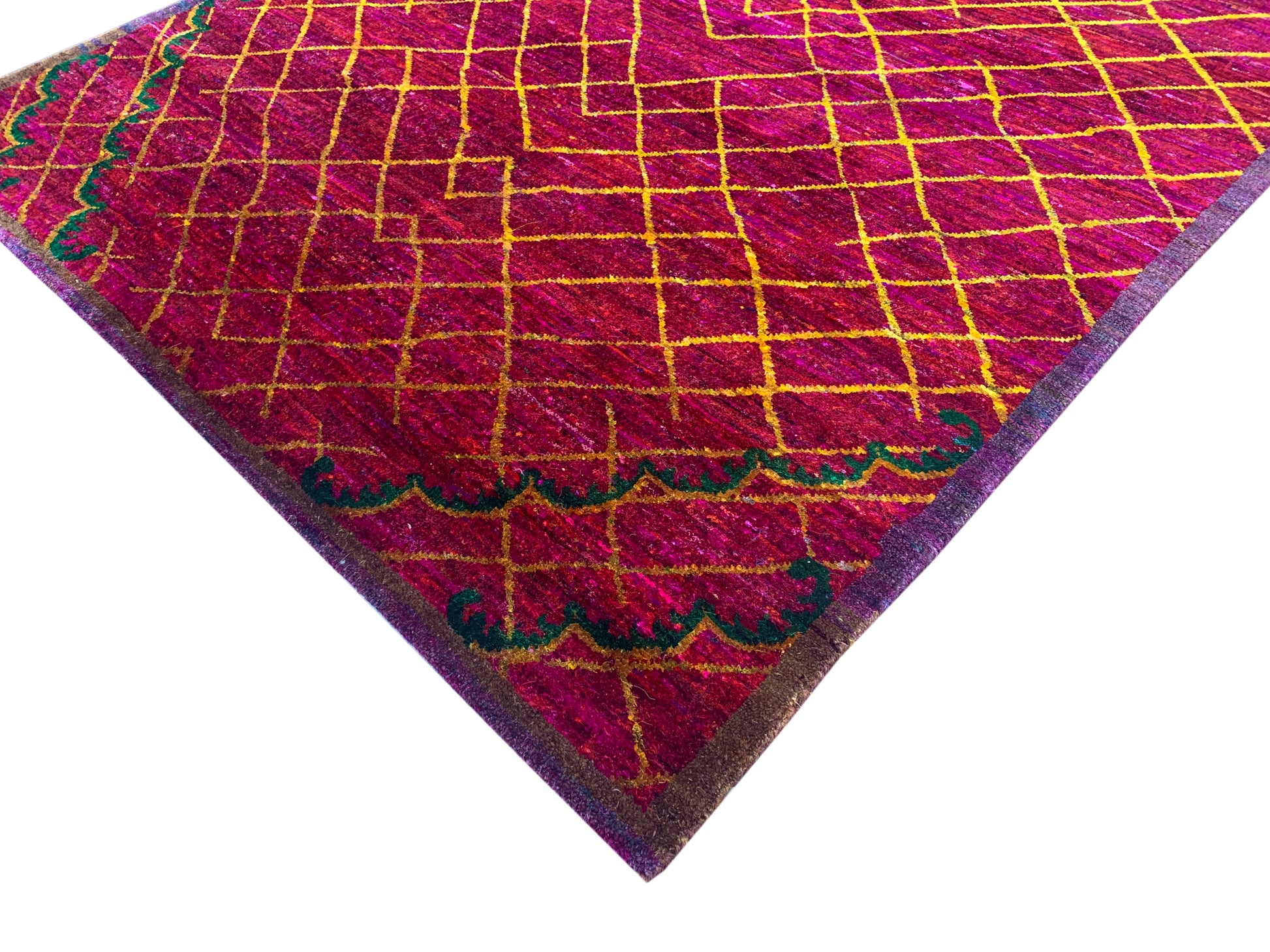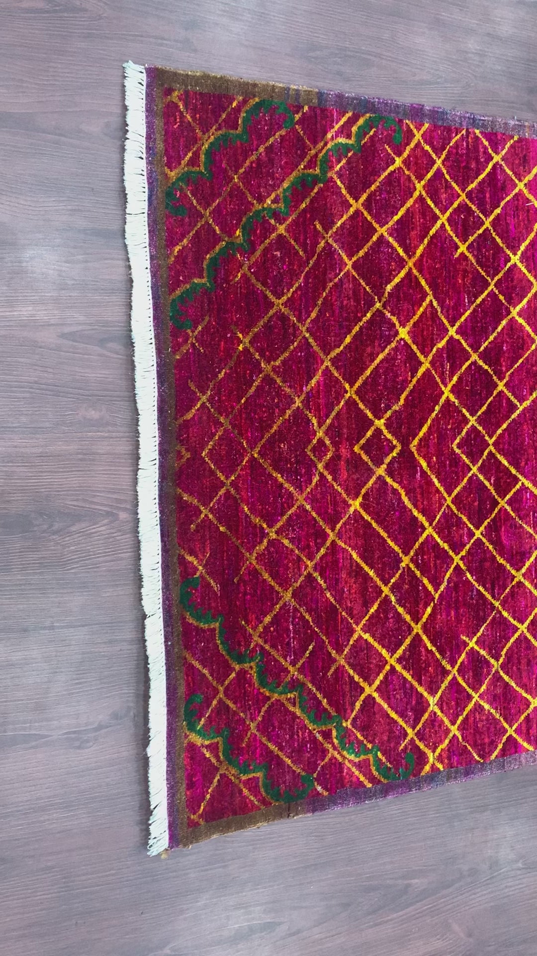 Red and Yellow, Sari Silk Regular Modern Handknotted 4.2x5.11Ft 125x181Cms Area Rug
