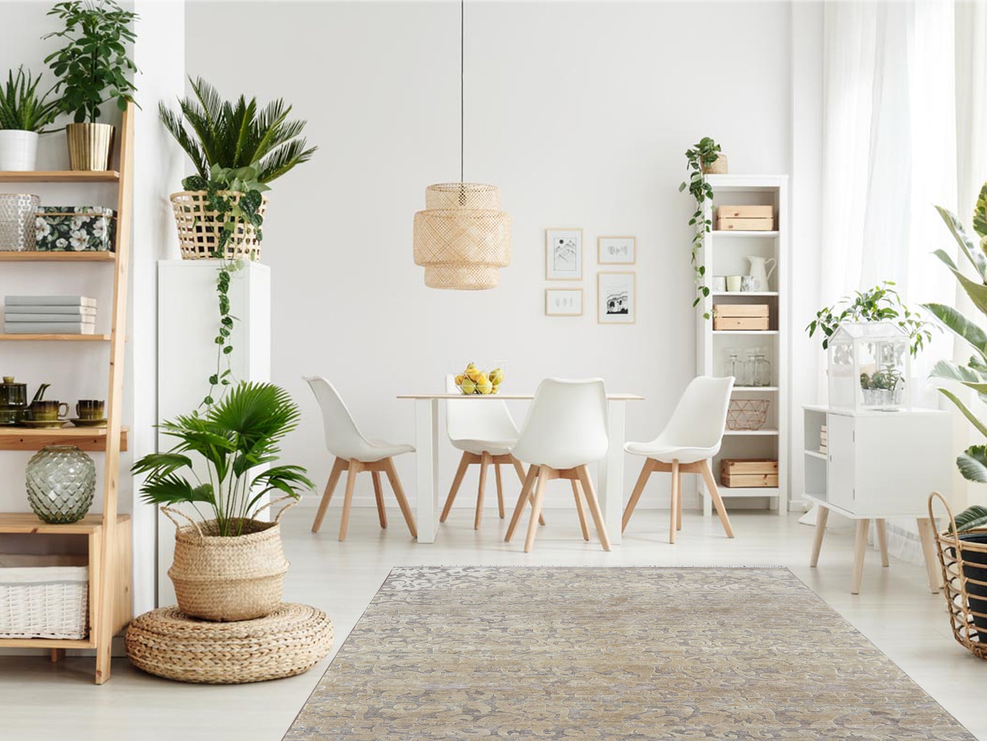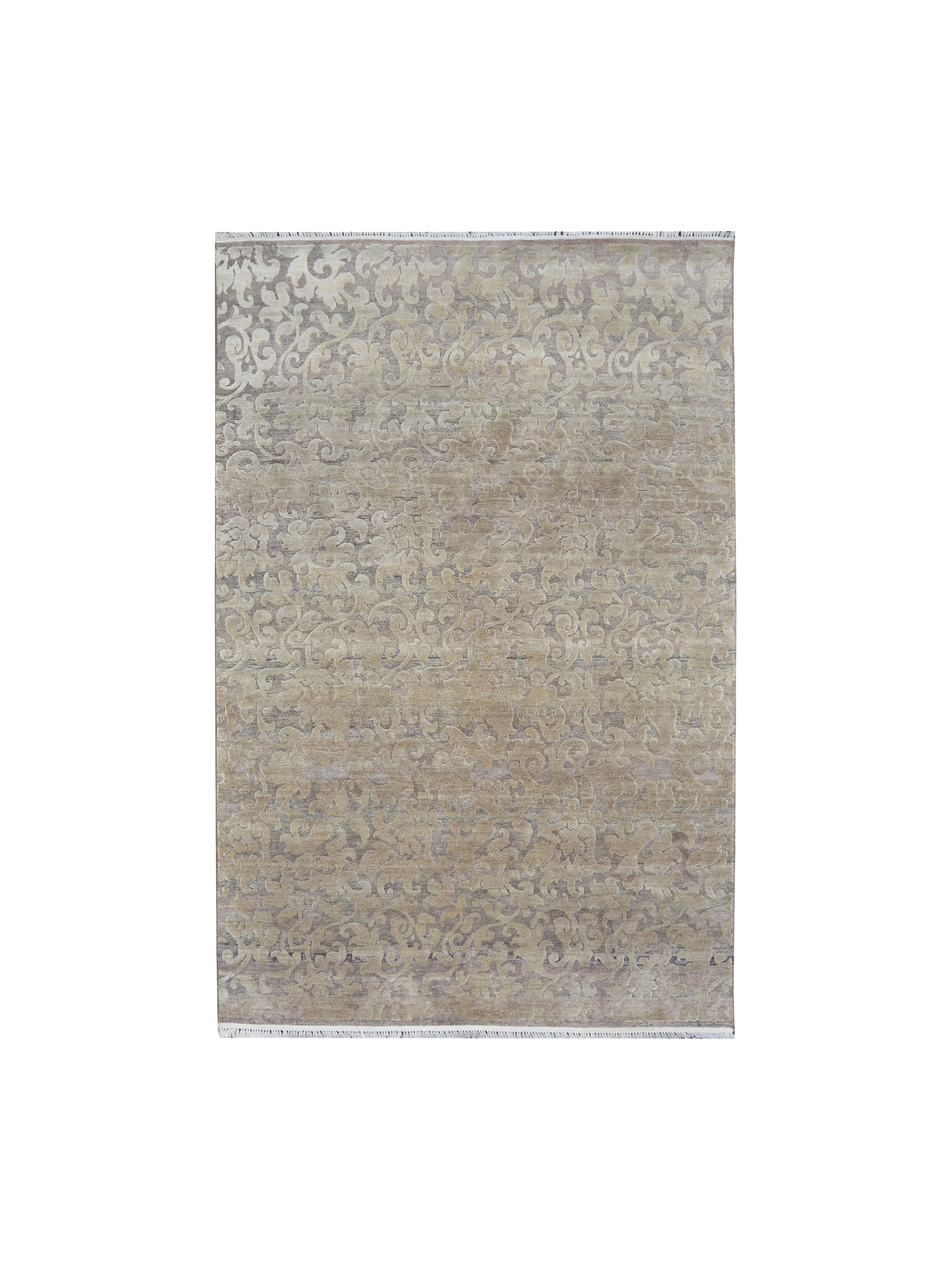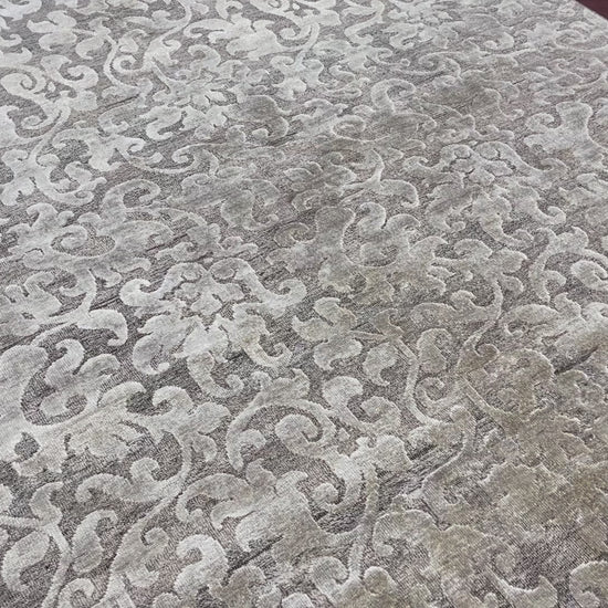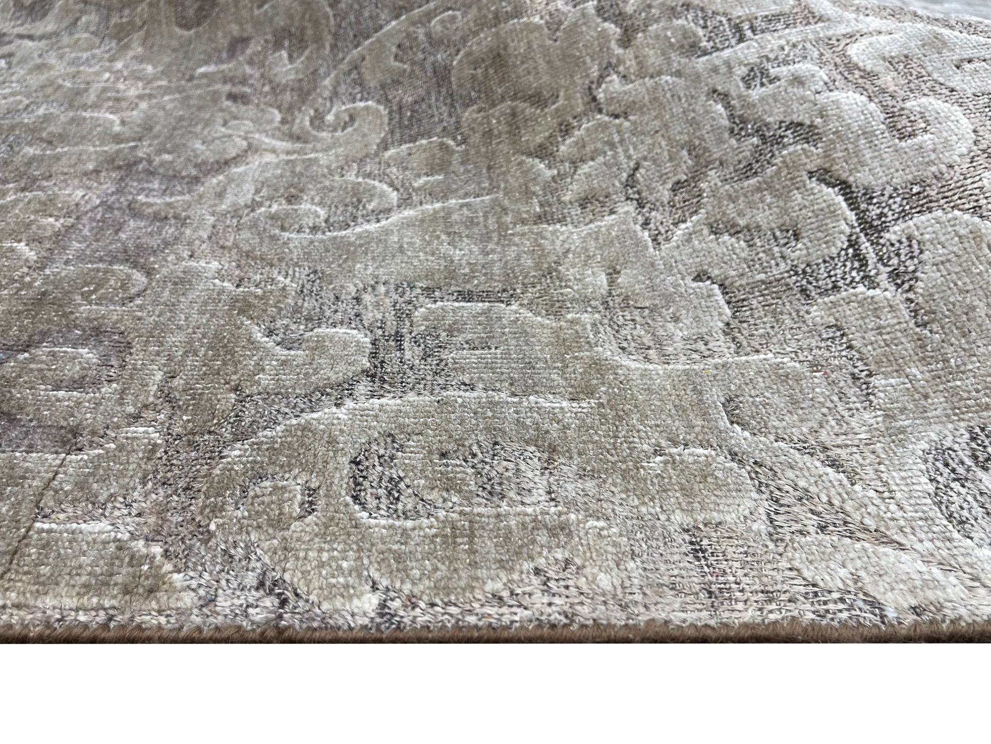 Silver and Brown, Silk and Wool Oxidized Transitional Handknotted 6.0x9.0Ft 182x275Cms Area Rug