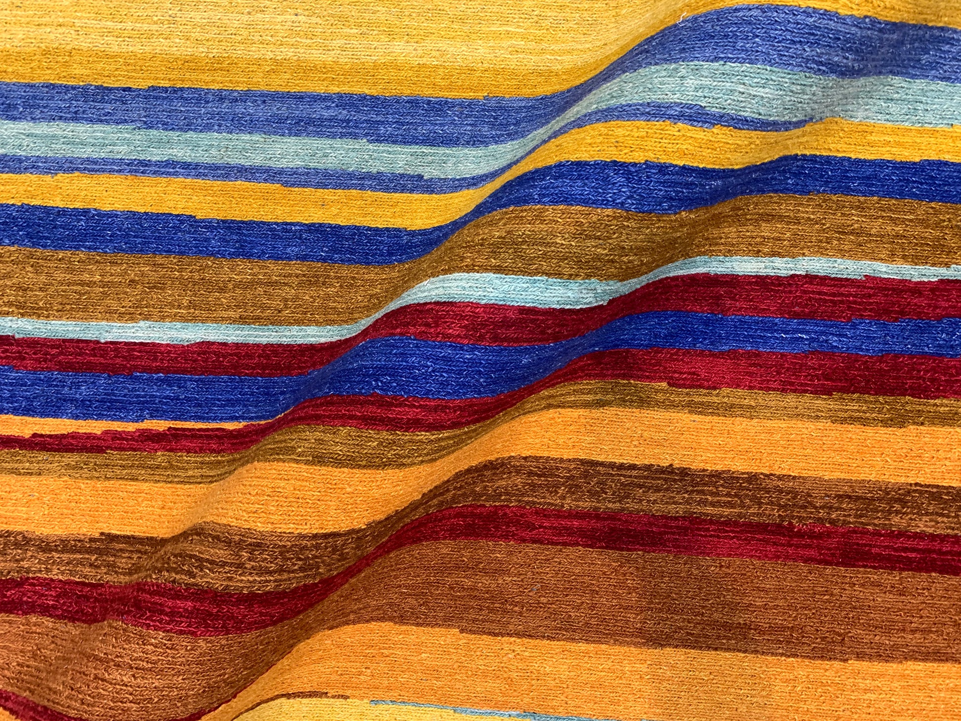 Modern Strips Soumak Handknotted Pure Wool Lo-Pile Area Rug